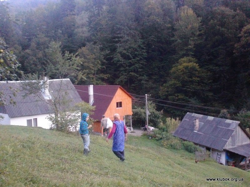 Вместе с несколькими ребятами мы отправились на разведку в село. При въезде в Костыливку местный житель Василий и его мама угостили нас целым мешком яблок, картошкой и салом. А Василий вдобавок ещё доставил всё это добро на своей машине в наш лагерь! По словам Василия, в основном местные жители работают на лесозаготовках, либо ездят на заработки. Раньше ездили в Россию, а теперь – в соседние страны Евросоюза. Многие держат овец, коров и коз, и на лето отправляют своих животных пастись высокого в горы на полонины, вместе с пастухами, которые получают оплату за каждое животное.