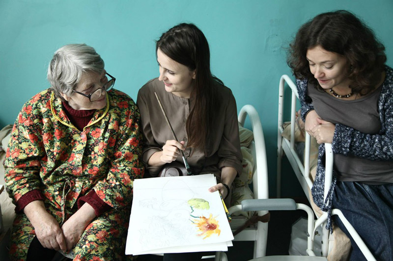 Ребята из фонда ездят в дома престарелых на выходные, а летом, бывает, проводят со стариками целую неделю – живут с ними, рисуют, лепят, поют песни, а параллельно проводят капитальный ремонт зданий, разрисовывают стены в палатах. Спрашиваю у Кати, что дают ей эти поездки.