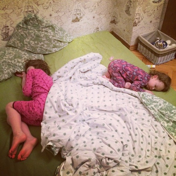 Все время это паническое чувство — что не так? почему это происходит? Владея двумя детьми с пониженной любовью ко сну, могу теперь с уверенностью сказать: всё было так, всё. Кроме нас с красными глазами, входящих поутру в стены.