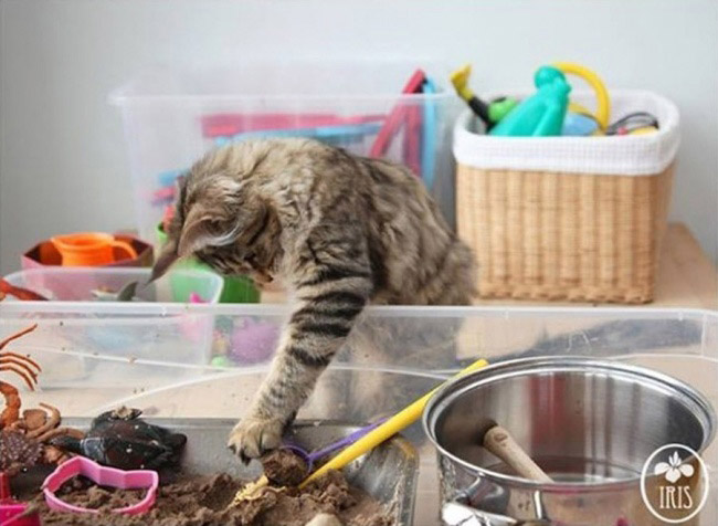 Тула даже помогает маме Ирис в обучении девочки. На фотографии она сидит рядом с песком и формочками.