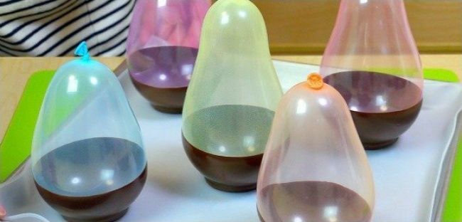 Просто растопите шоколад, а затем окуните в него надутые воздушные шарики. Затем дайте шоколаду высохнуть и аккуратно лопните шарики.