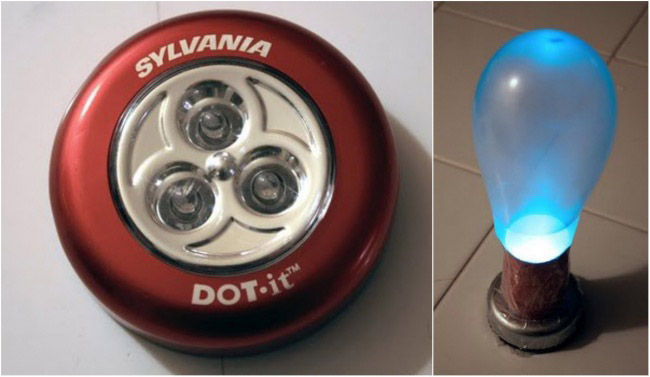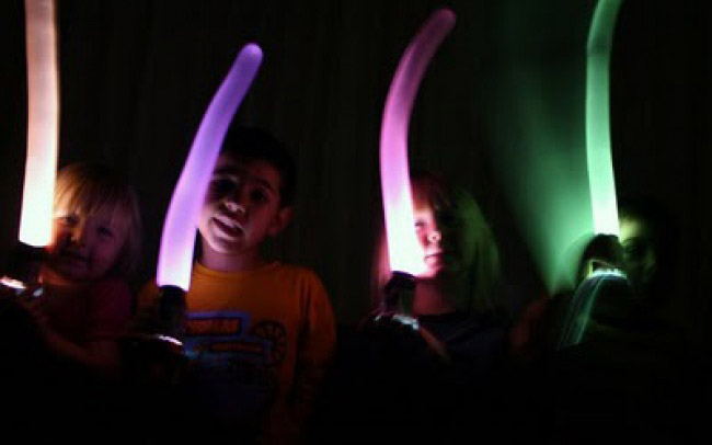 Устройте «Звездные войны»! Никто не пострадает, ведь мечи сделаны из воздушных шариков. Для подсветки вам понадобятся светодиодные фонарики, а для рукоятки — рулон от туалетной бумаги.