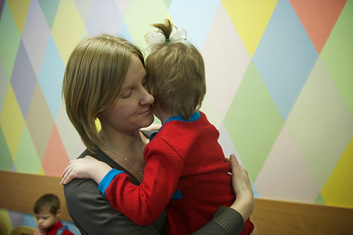 Тяжелая дорога по московским пробкам позади - можно расслабиться на руках у сотрудника нового дома. На фото - дефектолог Свято-Софийского детского дома Светлана Щербакова