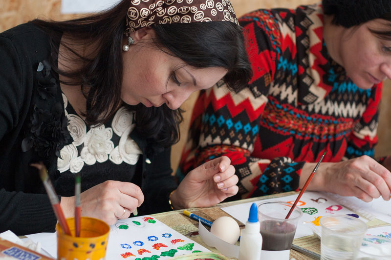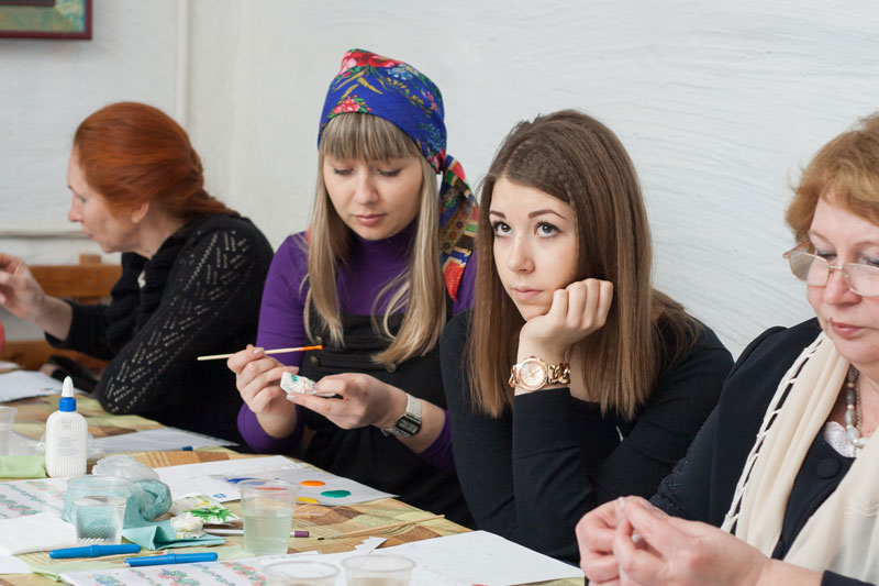 Также перед каждым участником находился учебный буклет с образцами росписи и с пошаговой инструкцией выполнения росписи и «тренировочный» лист с элементами, которые составляли роспись и которые необходимо было освоить сначала на бумаге, а затем уже на яйце.
