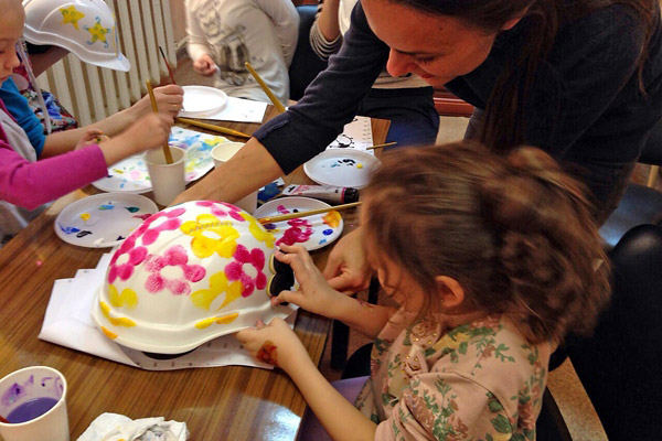 К разнообразным акциям, цель которых — привлечь внимание к строительству «Охматдета», — недавно присоединились и киевские художницы Дарина Корчевская и Татьяна Танская. Они вместе с детьми, проходящими лечение в больнице, разрисовали строительные каски — в них рабочие будут заканчивать крышу над блоком D.