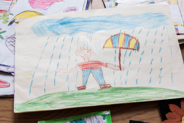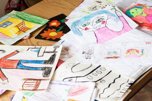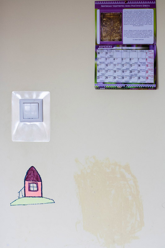 Дівчинка махає мені рукою й ховається в кімнаті. Мама Оля береться проводити екскурсію квартирою: майже в кожні кімнаті – котрийсь із Галиних малюнків. Подекуди малюнки на самих стінах, місцями залишились тільки затерті сліди.
