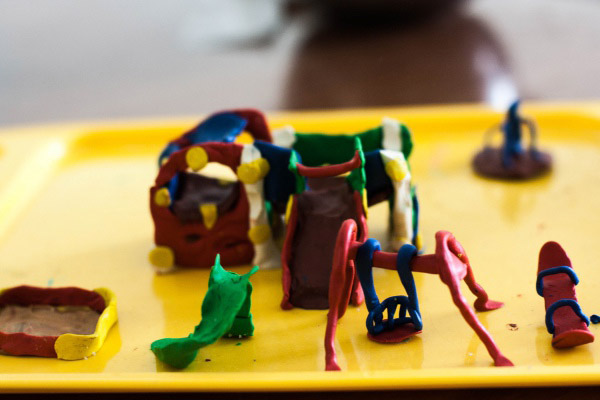 Щоб дізнатись, ідемо до вітальні. Дівчинка напівлежить на дивані, підібгавши коліна. В її руках дощечка із пластиліновим дитячим майданчиком. Усе виліплено до найдрібніших деталей: аж дивно, наскільки точно їй удався цей майданчик у мініатюрі, і як не ввірветься похила гойдалка з тоненьких "канатів".