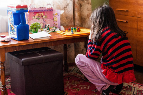 "У нас колись були дуже великі проблеми з виходом із дому. – Оля знову стишує голос, озираючись на двері. – Були істерики, крики, сльози, я виходила з дому вся мокра, тому що доводилось силою дитину вдягати".