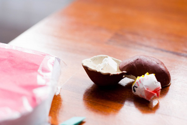 Захоплення кіндерами знаходить своє відображення в Галинчиній творчості. Мама несе рожевий конверт і виймає звідти дві половинки шоколадного яйця. Усередині кожної – біла деталь конструктора. Тільки взявши до рук, розумію, що насправді це пластилін. І навіть обгортка, яка виглядає цілком автентично, зроблена дівчинкою.
