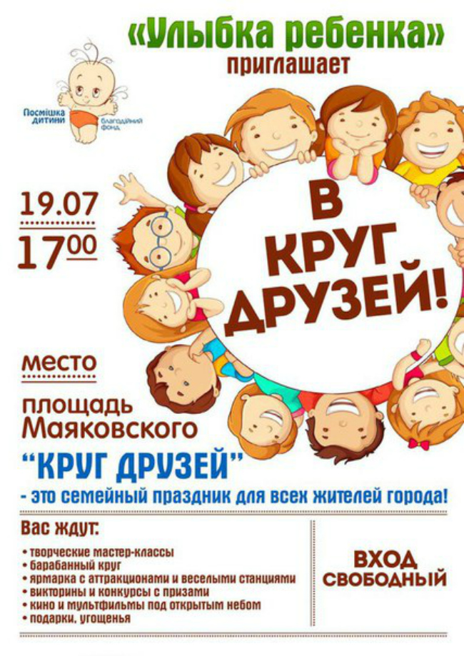 В воскресенье, 19 июля 2015 года состоится развлекательно-образовательное мероприятие в рамках программы «Круг друзей». Место проведения – площадь Маяковского