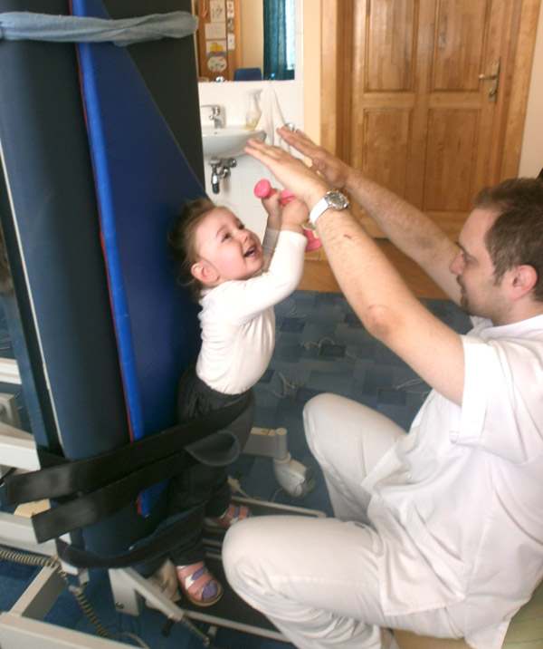 В первый месяц жизни маму с малышкой направили к детскому неврологу. И тут все и началось: Настеньке диагностировали повышенный тонус в конечностях, дисплазию тазобедренных суставов, родовую травму шейных позвонков и органическое поражение центральной нервной системы. Начался долгий курс массажа, лечебно-физической культуры, а также уколы и таблетки.… На прием к неврологу семья ходила как в магазин. После данных процедур тонус снижался, и Настя могла переворачиваться со стороны в сторону и опираться на предплечья. Несмотря на то, что Настеньке было уже 10 месяцев, она так и не садилась и даже не ползала. К счастью, после первой поездки в Трускавец ребенок научился сам садиться, появилась опора в ногах, и снизился тонус. После второго курса реабилитации Настенька начала ходить и уже говорила 4 слова!