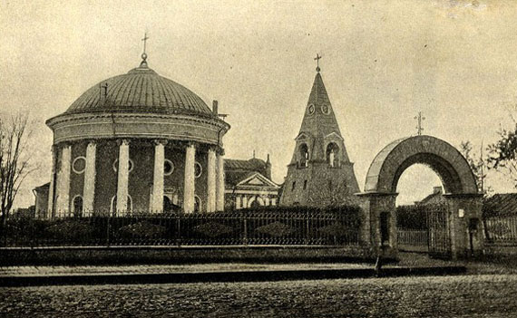 Вид Троицкого храма у Невской заставы (фото кон. 19 века), построенный по проекту архитектора, поэта, переводчика Николая Александровича Львова в конце 18 века храм. В народе храм называют «Кулич и Пасха»