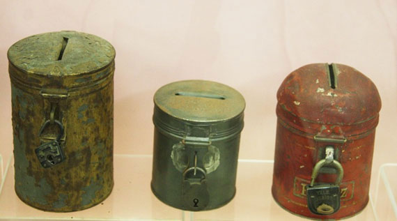 Кружка для сбора пожертвований представляла собой жестяной сосуд с узкой скважиной на крышке и с замком. Впервые такие кружки появились в церквях.