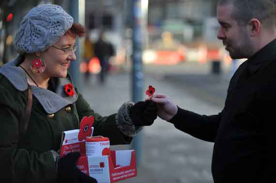 Старинная традиция, идущая от кружечных сборов 19 века – давать за пожертвование маленькие сувениры. Это могут быть металлические и бумажные жетоны с различными изображениями – Знаки пожертвований, или, как в данном случае, бумажные цветы