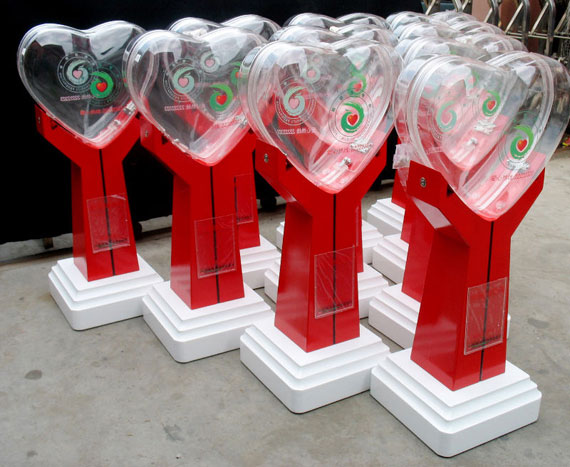 Деньгосборная копилка, выполненная в традиционной для благотворительности символике – руки, держащие сердце. Рука и сердце – самые распространенные символы «доброго дела».