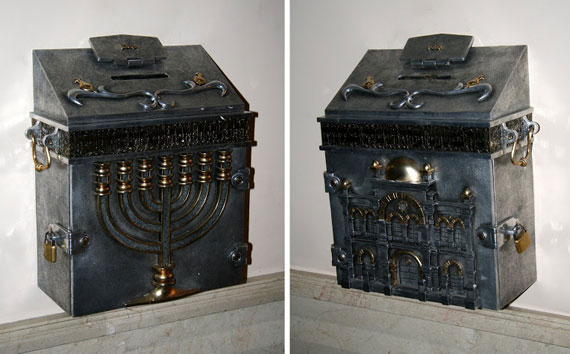 Синагогальная кружка для сбора пожертвований. Структура еврейской общины была сложна – в ней имелось множество союзов, братств, общественных и благотворительных организаций. И каждая собирала пожертвования.