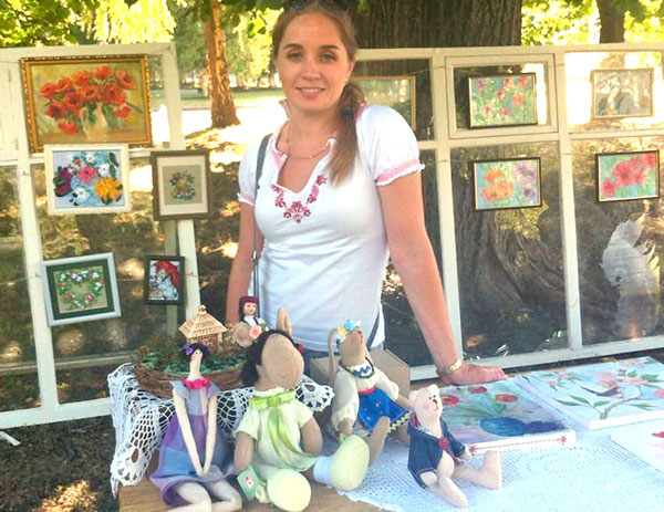 — Это работы вынужденных переселенцев, которых наша община приютила минувшей зимой на базе детского лагеря в селе Брусино Краснолиманского района, — рассказывает руководитель благотворительного фонда «Рука помощи», пастор церкви «Ассамблея Божья» Сергей Косяк. — Наш центр временного поселения «Березка» помог убежавшим от войны семьям — около 300 человек — расселиться и в других областях Украины. Чтобы снять стресс, женщины начали рукодельничать. И спустя некоторое время у них накопилось столько работ, что возникла идея провести благотворительную выставку-ярмарку, а десять процентов вырученных средств направить на реабилитацию детей из зоны АТО — Марьинки, Красногоровки, Горловки, которые отдыхают сейчас в детском лагере Святогорска.