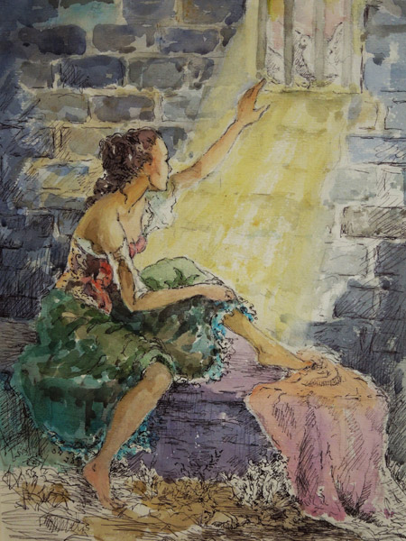- Да, вот именно! Даже если ты физически не можешь идти к мечте, ты всегда можешь попытаться идти к ней в душе. Идея картины пришла благодаря фотографии, которую я однажды увидела в интернете. Конечно, я отобразила девушку по-своему. В розовых тонах, внизу лужи от дождя, в которых отражаются ее мечты. Я также отобразила ее душевные крылья. В моей картине девушка осмеливается мечтать, что бы встать, танцевать и воспарить. Ни за что не нужно бояться своих мечтаний. Нужно смело идти им навстречу, вопреки всему. И, конечно же, чтобы окружающие помогали исполнять мечты. Одному тяжело.