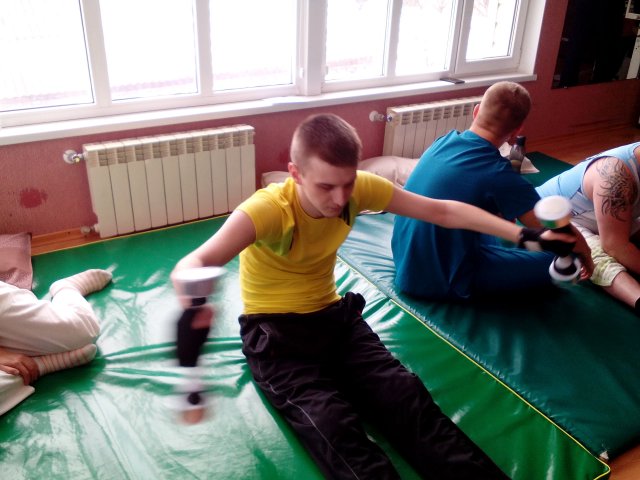В центре «Гута» занимаются с людьми, у которых травмы позвоночника и спинного мозга, занятия проходят по шесть часов в день. Поверьте,это очень тяжелый труд.