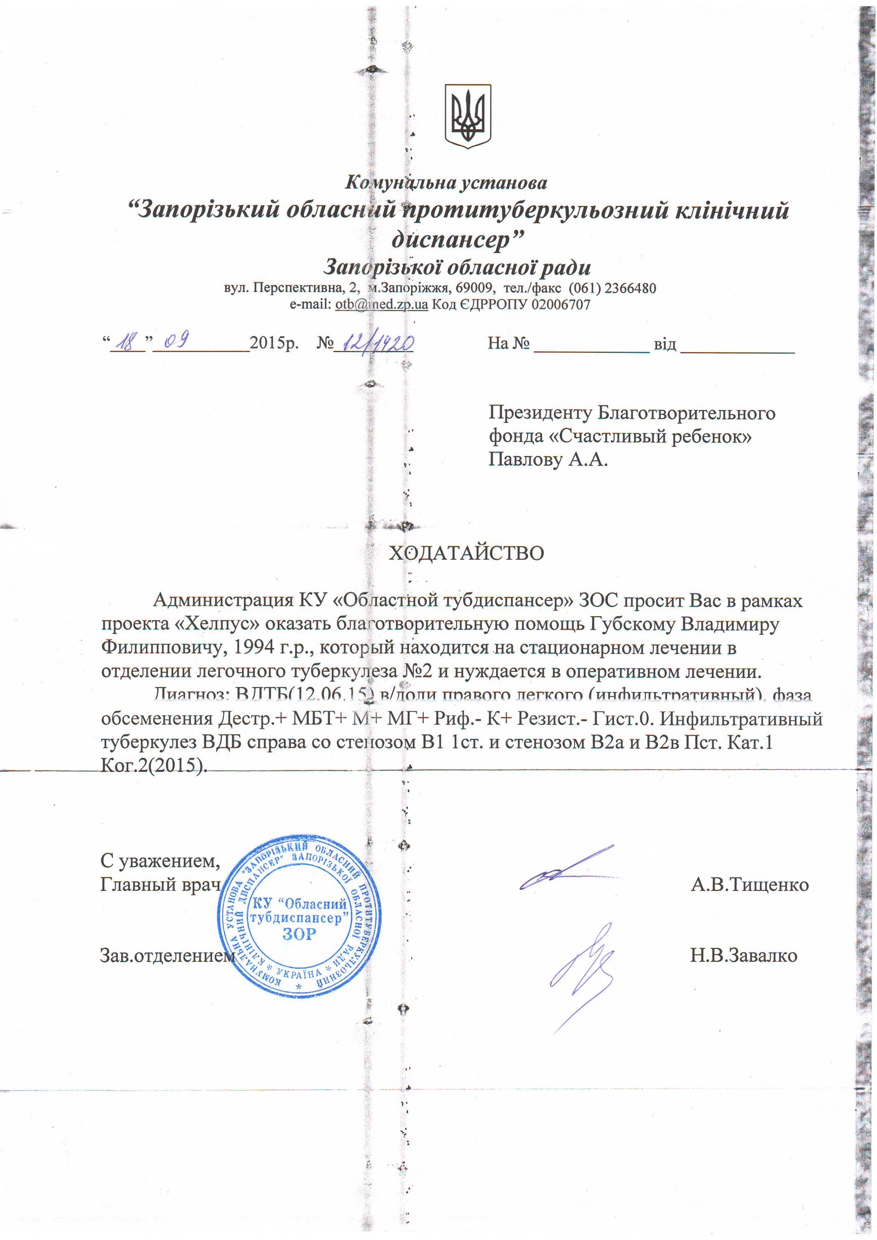 Заболел туберкулезом легких в мае 2015г., лечится в областном противотуберкулезном диспансере. Необходима срочная операция по удалению доли легкого.