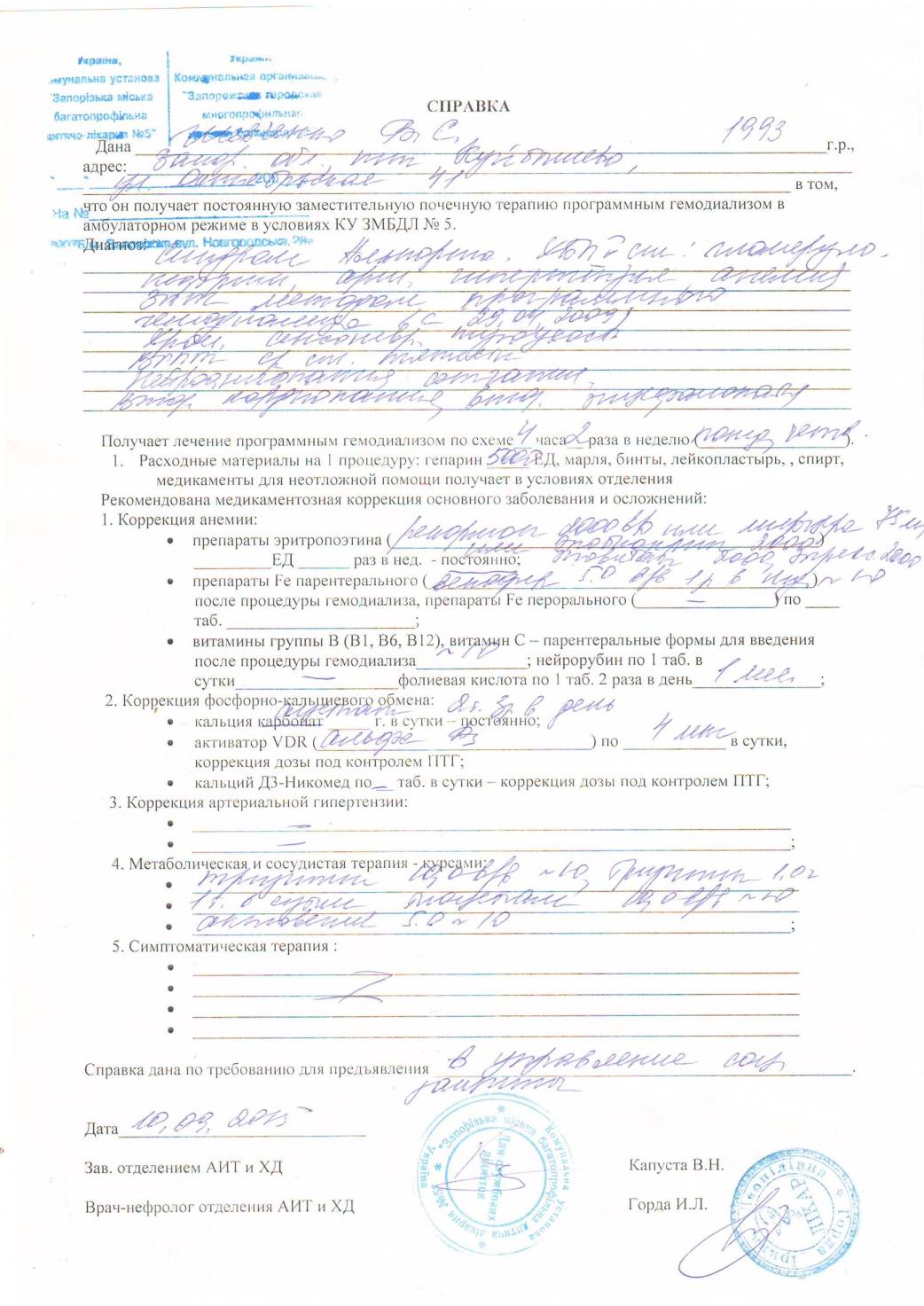 Диагноз: Cиндром Альпорта, почечная недостаточность.