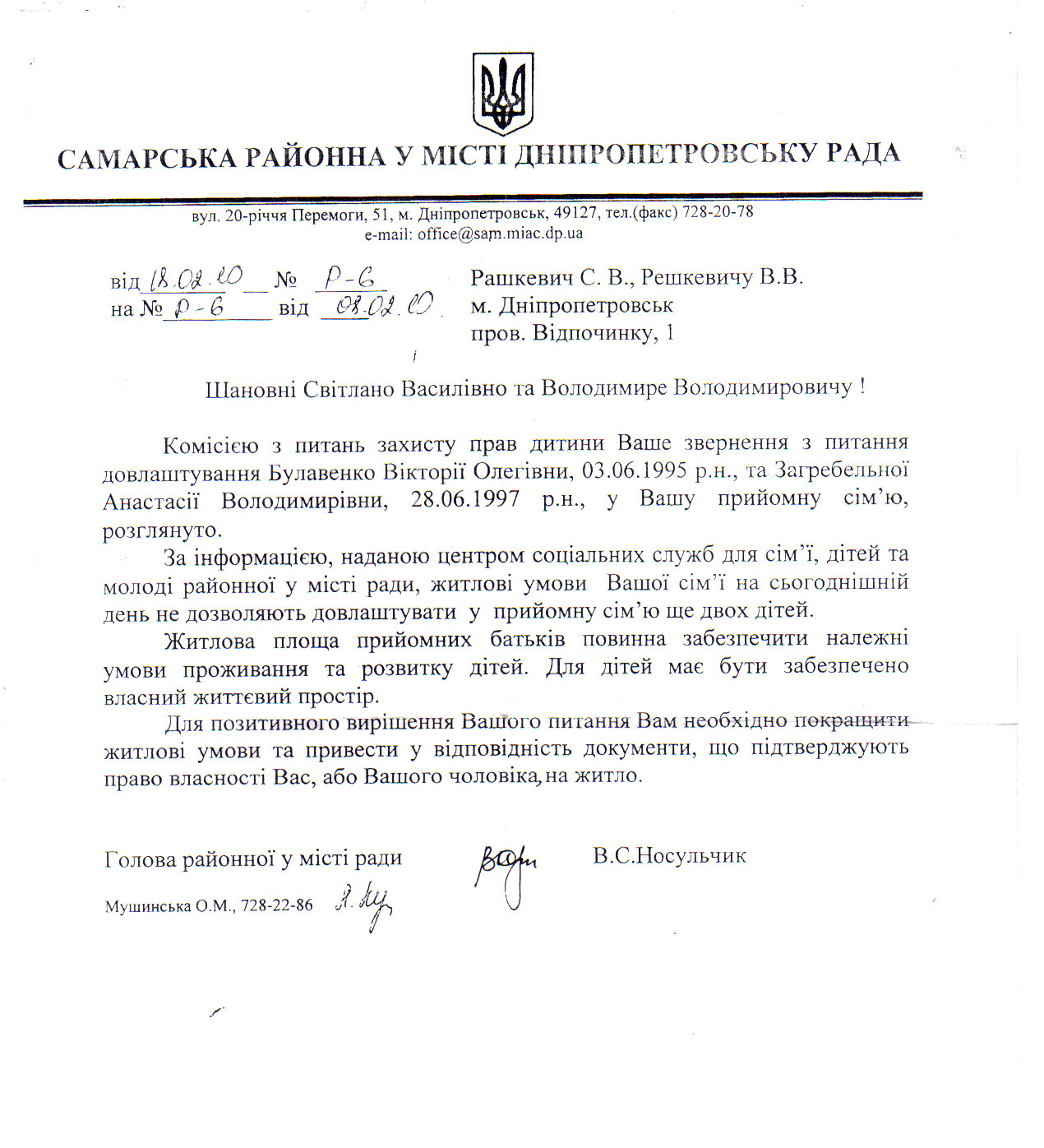Телефон Светланы Васильевны 38 093 915 54 92. Адрес семьи Рашкевич: Украина, г.Днепропетровск, Самарский р-н, пос. Игрень, пер. Отдыха,1.