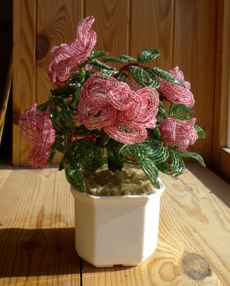 Они сделали и еще будут делать (в свое удовольствие на занятиях по бисероплетению) эти удивительные деревья и цветы, который сможет приобрести любой из Вас. Цена? Не названа. Себестоимость всей поделки с учетом оплаты труда руководителя кружка, бисера, проволоки (самая затратная часть), горшочка, гипса и декоративных элементов + пересылка ее = около 300 грн. Можете назвать цену больше? Называйте, зная, что вырученные деньги пойдут на ремонт Их Будущего Дома. Если на одно из изделий будет несколько претендентов, его получит тот, кто назовет наибольшую цену.