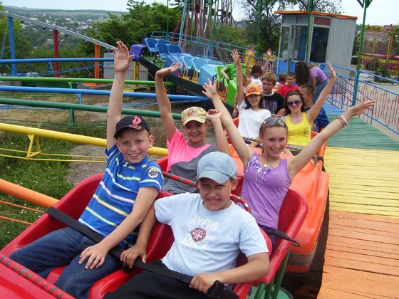 Рядом с панорамой расположились разные аттракционы, куда мы направились дружной гурьбой. Ребята катались на аттракционах, и я увидела, что им радостно, хорошо и по-детски весело.