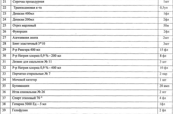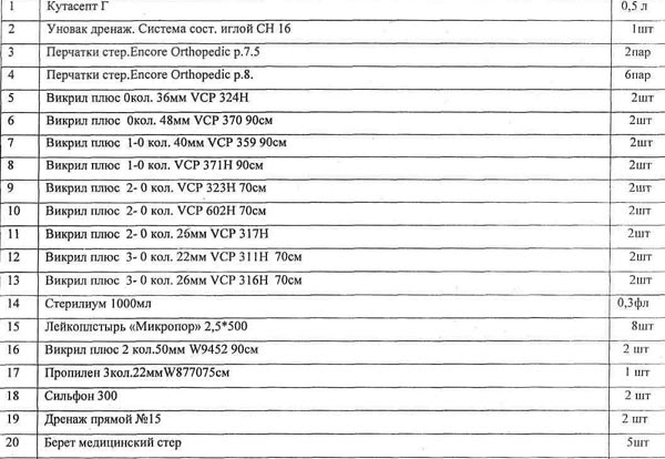 Список лекарств и расходных материалов на операцию: 1 стр. 2 стр. 3 стр.