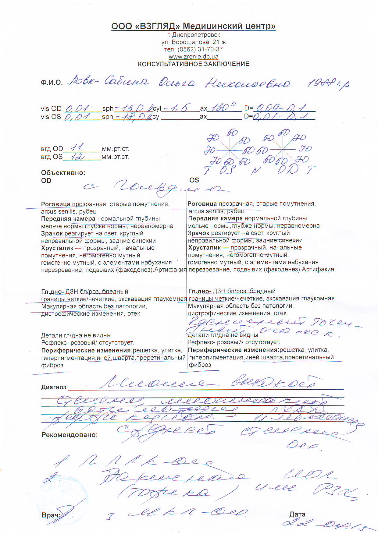 Я сколько могла, оттягивала данную операцию, понимала, что уже надо, но... И вот, когда оттягивание стало опасным и невозможным, я решилась. На весах было или, или… Мое зрение за последние полгода снизилось на столько, что я уже не могла нормально, без посторонней помощи выполнять весь возложенный на меня обьем работ.