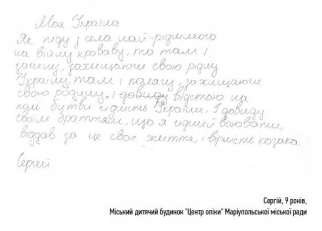 Вірш 9-річного Сергія, вихованця Маріупольського дитячого будинку "Центр опіки"