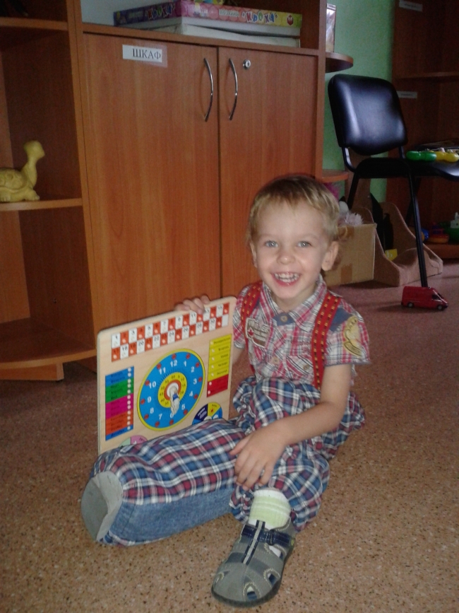 Если коротко описать диагноз, то он звучит так: врожденная аномалия развития правой нижней конечности, отсутствие малоберцовой кости, вальгусная деформация коленного сустава и стопы, укорочение до 10см. Архипу не смотря, на его маленький возраст, уже было сделано три сложных операций.