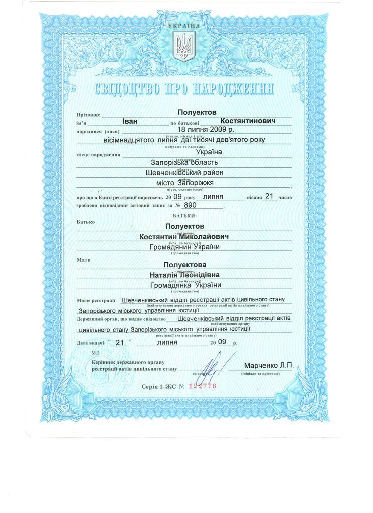 Полуэктов Иван 18.07.2009 года рождения