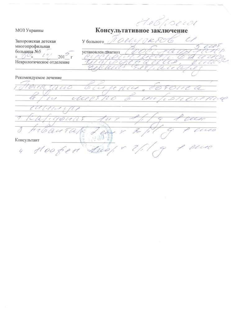 На данный момент мы с сыном находимся дома. 14.10.2015 мы ложимся в отделение Детской неврологии в Запорожскую областную больницу для продления инвалидности (нам нужна туда ложиться каждые 2 года).