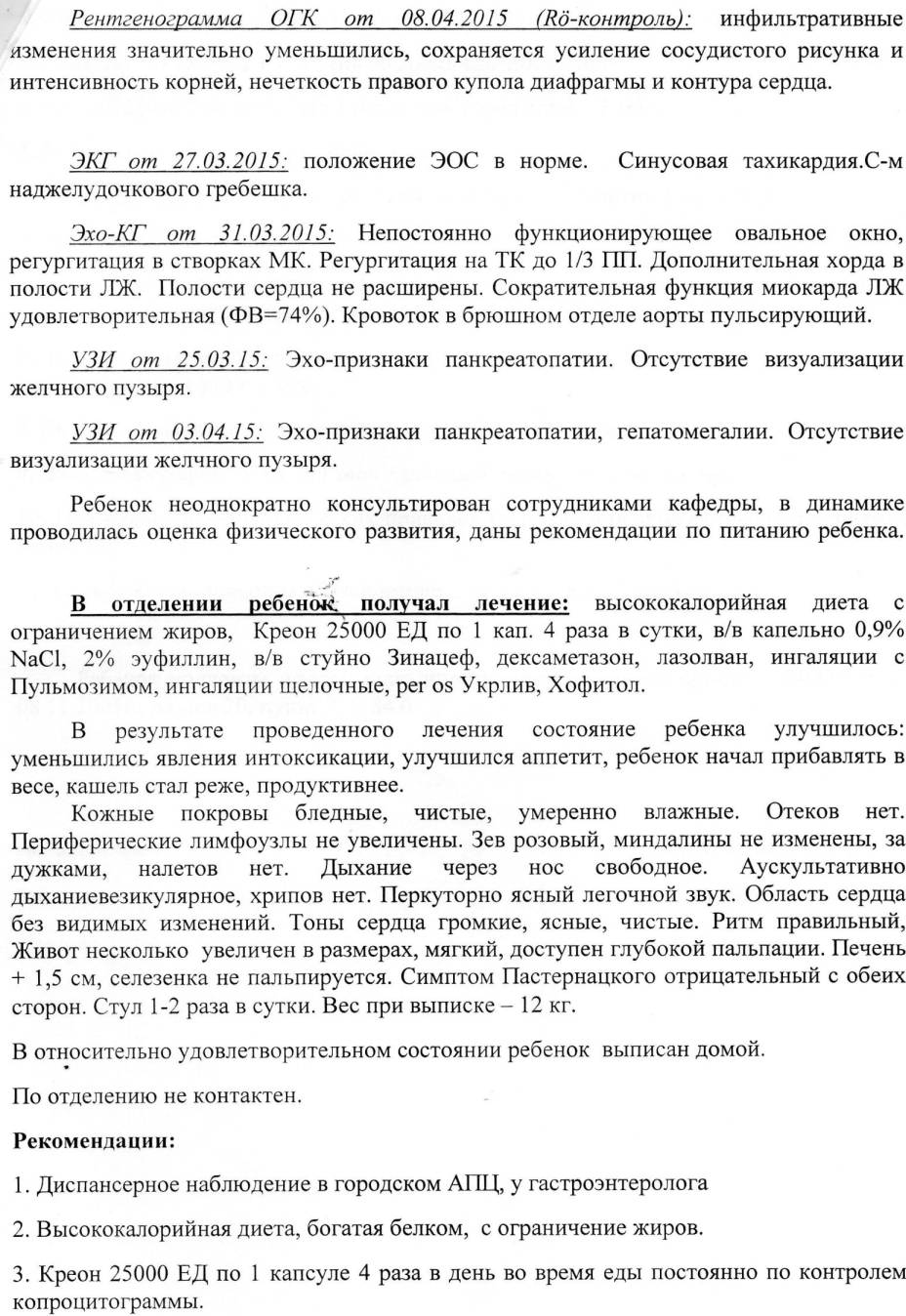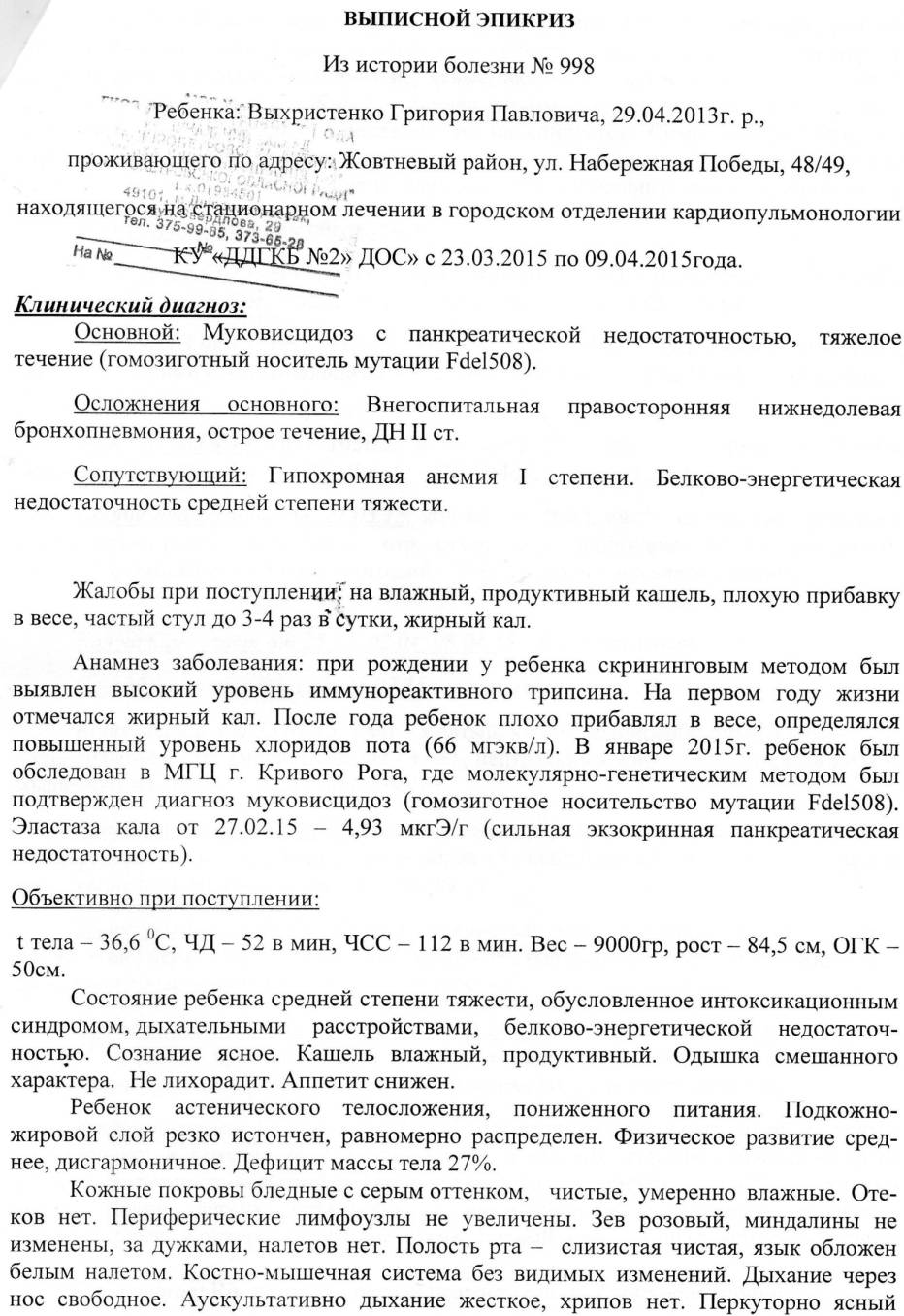 Диагноз: Муковисцидоз с панкреатической недостаточностью.