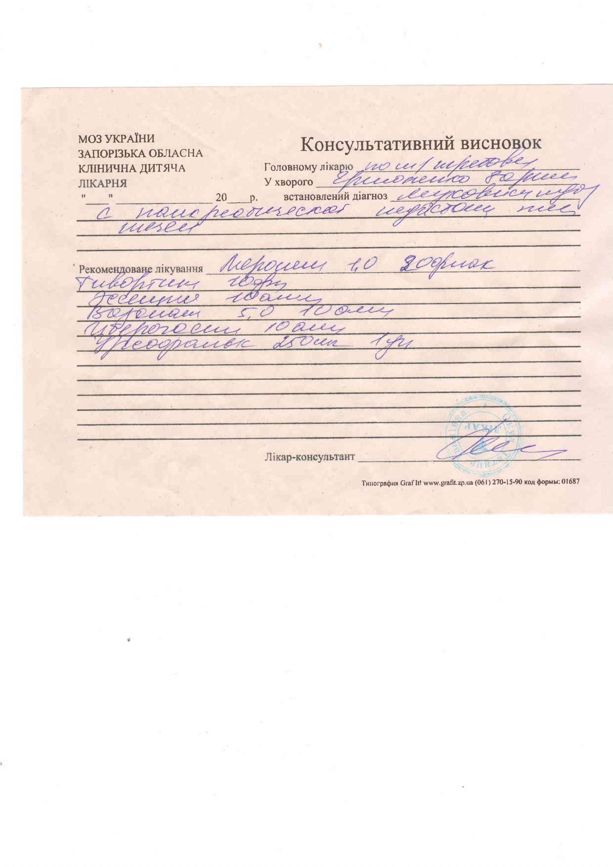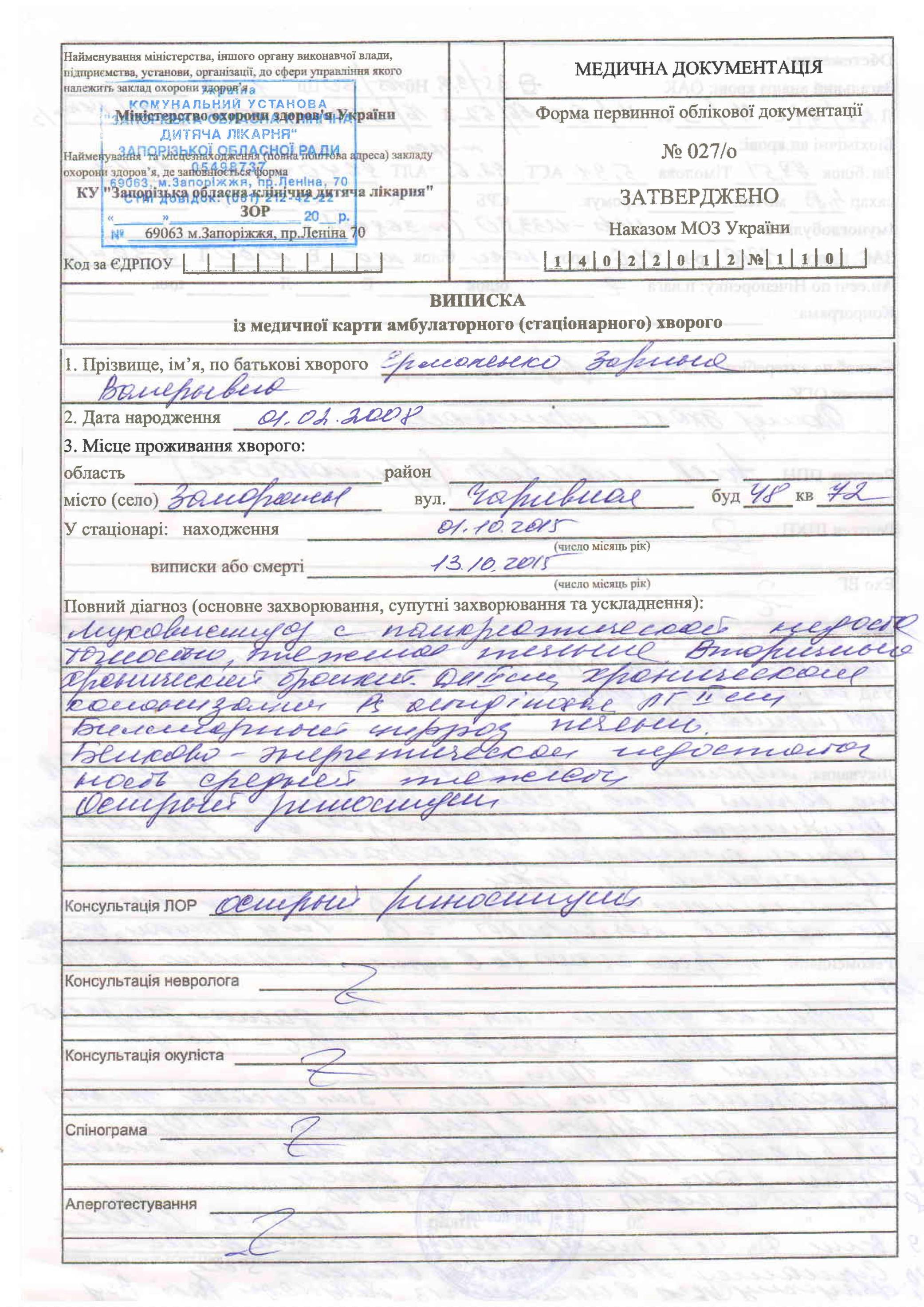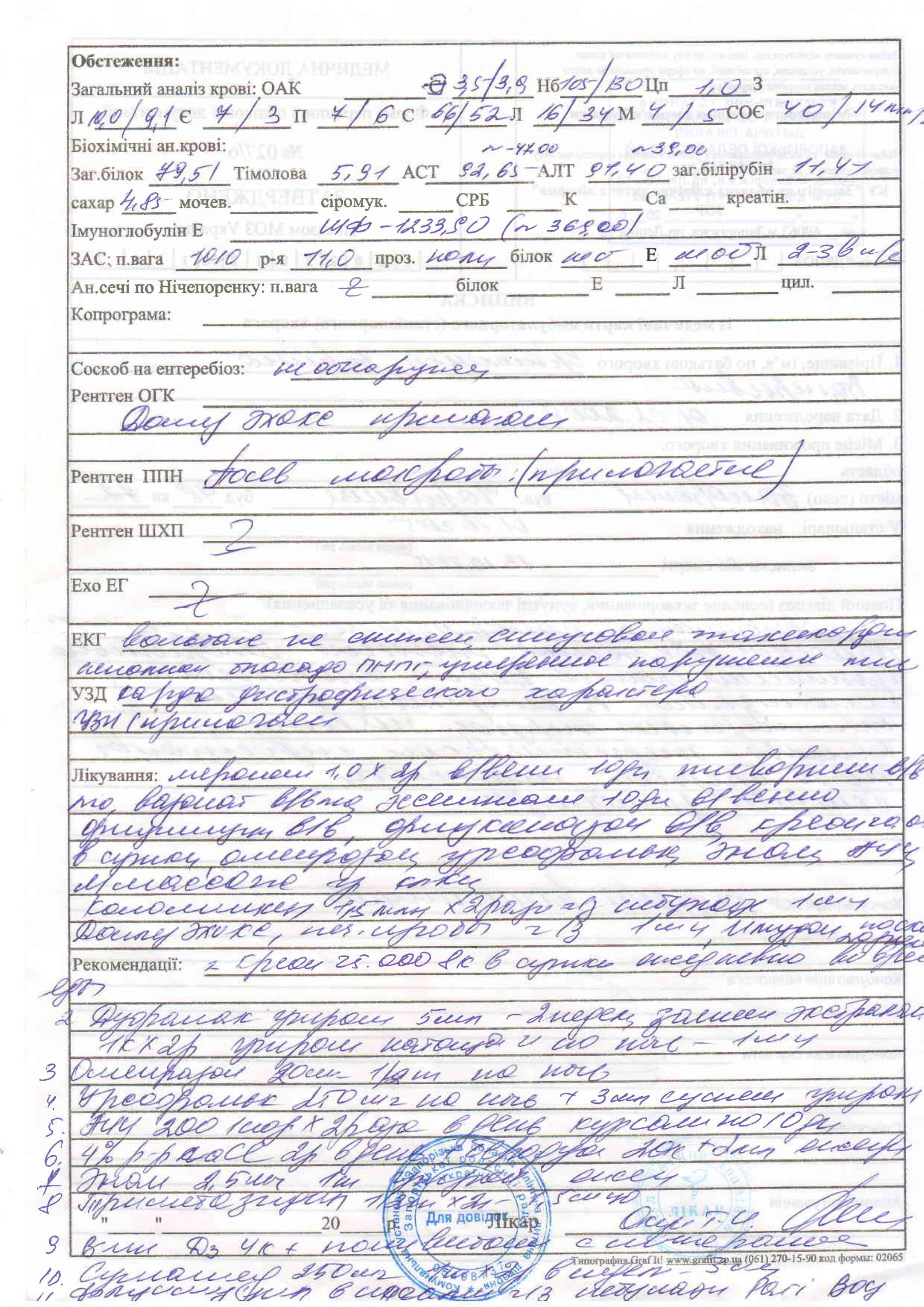 Новости о лечении Ермоленко Зарины