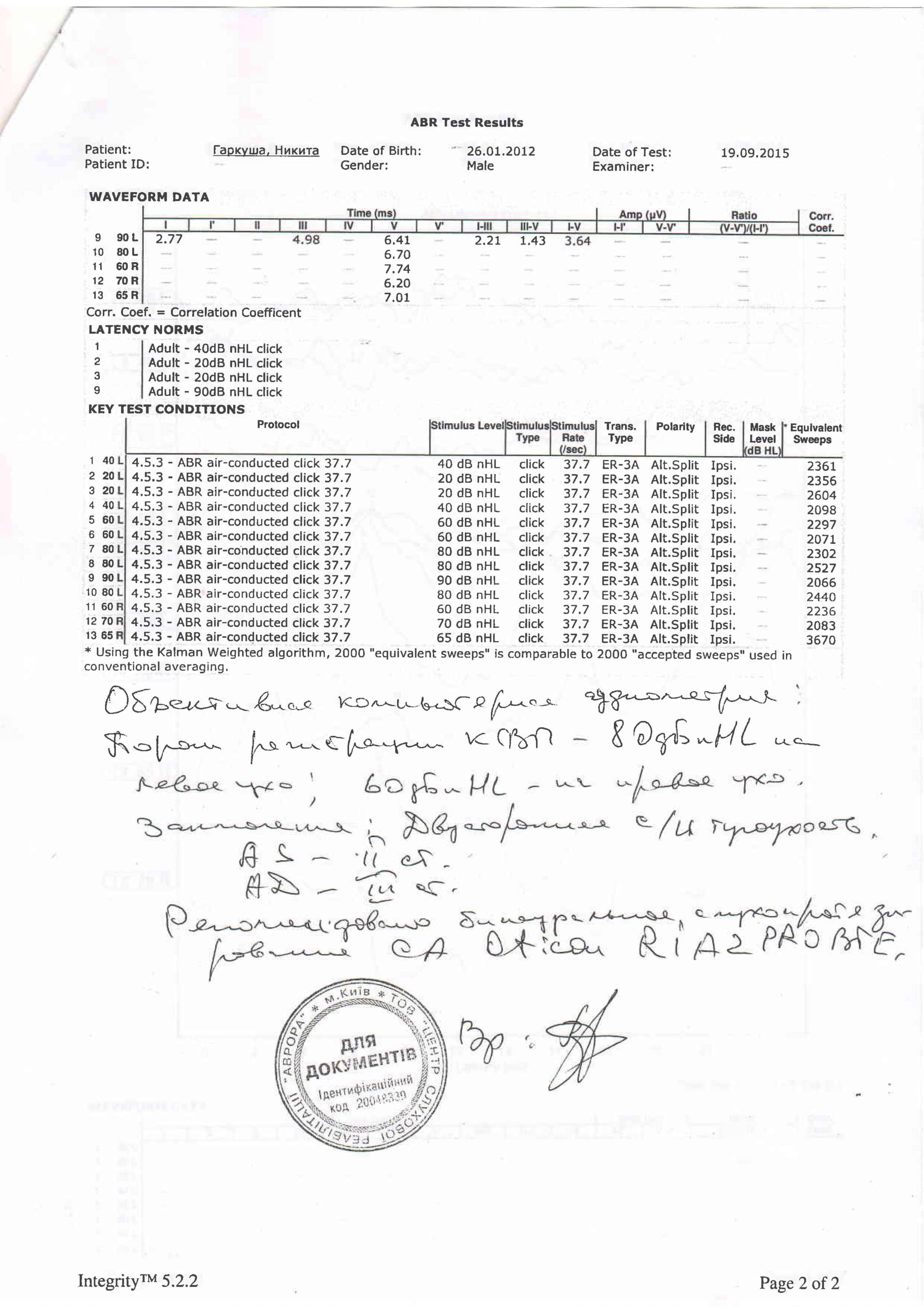 Но, когда ребенок стал регулярно прислоняться к включенному телевизору или колонке компьютера, а в детском саду обнаружилась его отчужденность от коллектива, замечания воспитателей, что ребенок часто не реагирует на обращение к нему - мы опять побежали по врачам. В Запорожском центре АВРОРА была сделана аудиометрия - и прозвучавший диагноз был как гром с неба. У Никиты выявили тугоухость 2 и 3й степени.