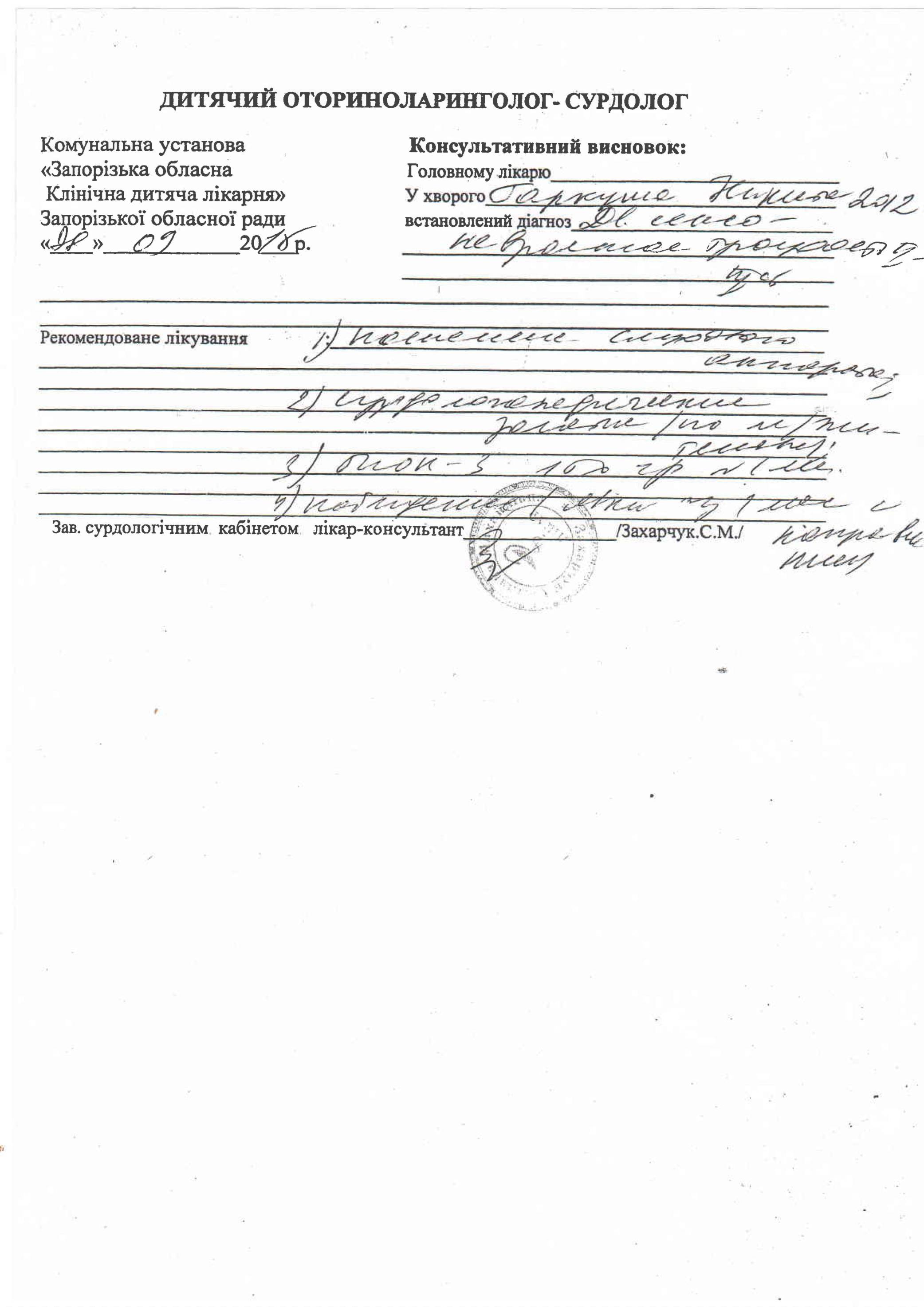 Диагноз: Сенсоневральная тугоухость 2 и 3 степени.