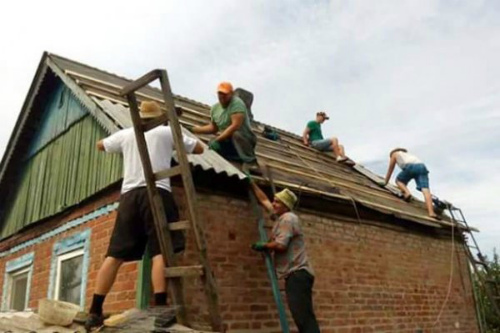 Потом увидели новую нужду — разрушенные дома. Только в Славянске в разной степени пострадали 1500 частных домов. Полностью разрушены — 200 домов и 150 квартир. Начали восстанавливать крыши. Пригласили волонтеров со всей Украины, искали материалы. За последний год помогли восстановить около 130 домов и крыш только в Славянске. Шесть домов отстроили с фундамента.
