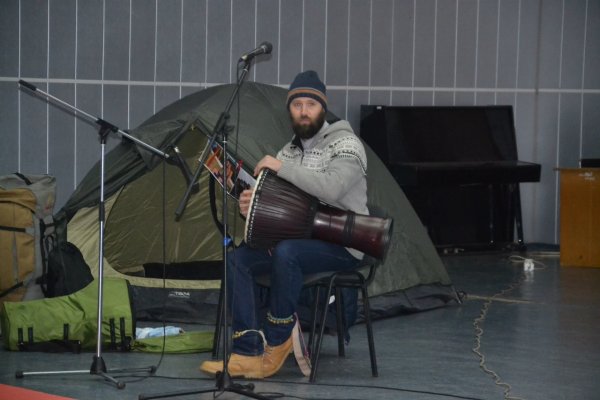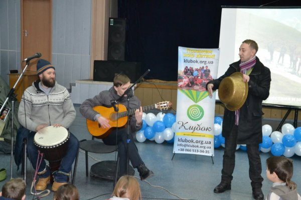 Если в обычных случаях говорят о «рояле в кустах», то в случае с праздником «Клубка» в кустах оказался припрятан барабан. Отличный походный инструмент, который поможет и развеселиться, и согреться. Известный запорожский музыкант Денис «Барабанза» Васильев организовал для участников праздника настоящее барабанно-интерактивное шоу. Все пришедшие на праздник научились устраивать музыкальные выступления, используя в качестве инструментов собственные ладоши, пальцы, плечи, руки и ноги. Затем самые юные и активные «клубковцы» учились играть на походных инструментах – кружках, мисках и тазиках. Под дирижированием Дениса Васильева они быстро сыгрались в настоящий ансамбль.