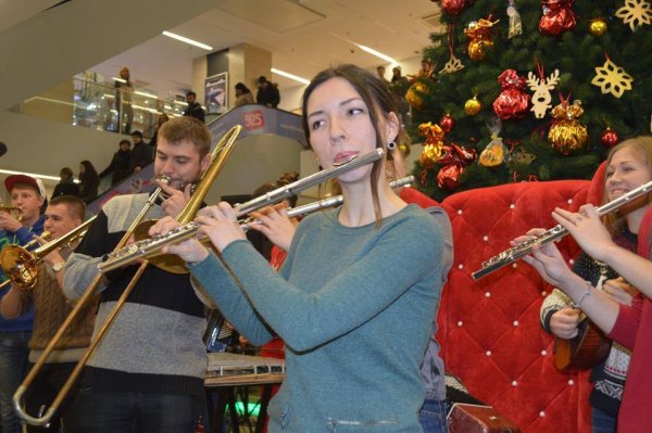 Вечером 20 декабря в холле торговом центре «Аврора» они провели необычный благотворительный музыкальный флешмоб. В ходе яркого импровизированного действа музыканты исполнили популярные новогодние и рождественские мелодии – Jingle Bells и «Щедрик». Начал флешмоб своей игрой один из братьев, Александр Шевченко.