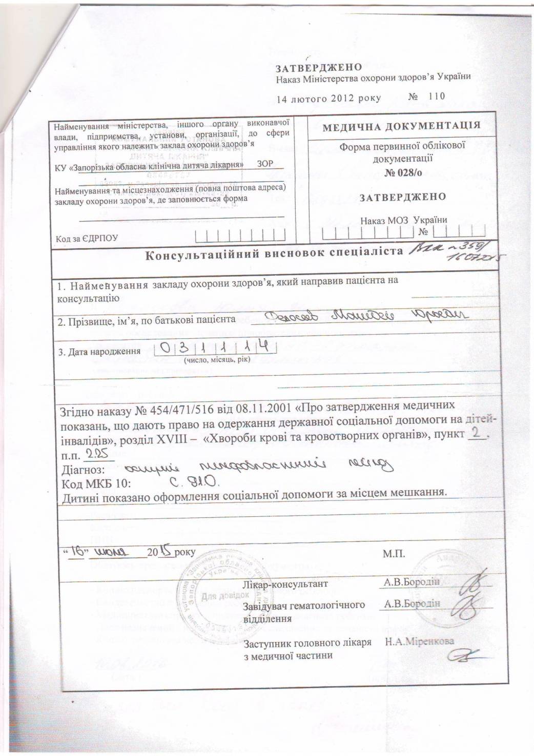 Родители стараются выполнять рекомендации врачей, постоянно продолжают принимать дорогостоящие лекарства, периодически проводить обследования и анализы. На данный момент ежемесячно нужно принимать пуринетол, метотрексат. Для многодетной семьи, у которой 8 детей – это тяжелая ноша. Ежемесячные расходы только на эти медпрепараты около 4000 грн., плюс наблюдения и обследования, а если простуда - еще расходы. Мама очень благодарна всем, кто помогал и поддерживал ее на протяжении трех лет и будет признательна, если мы поддержим ее снова.