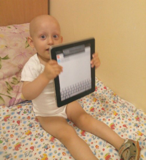 Мы тоже погрустили с малышом, пока не вспомнили, что одна прекрасная девушка принесла нам в фонд планшет. Наша добрая волшебница просила подарить девайс больному ребеночку, из не богатой семьи. Вот так вот планшет нашел своего нового хозяина, а Макар любимый «мой бук». Словами не описать радость Макара, как он целовал планшет, и как мама Инна не верила, что им вот просто так на день рождения могут сделать такой дорогой подарок.