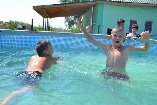 - купание в бассейне в лагере и на ставке, катание в надувной лодке;