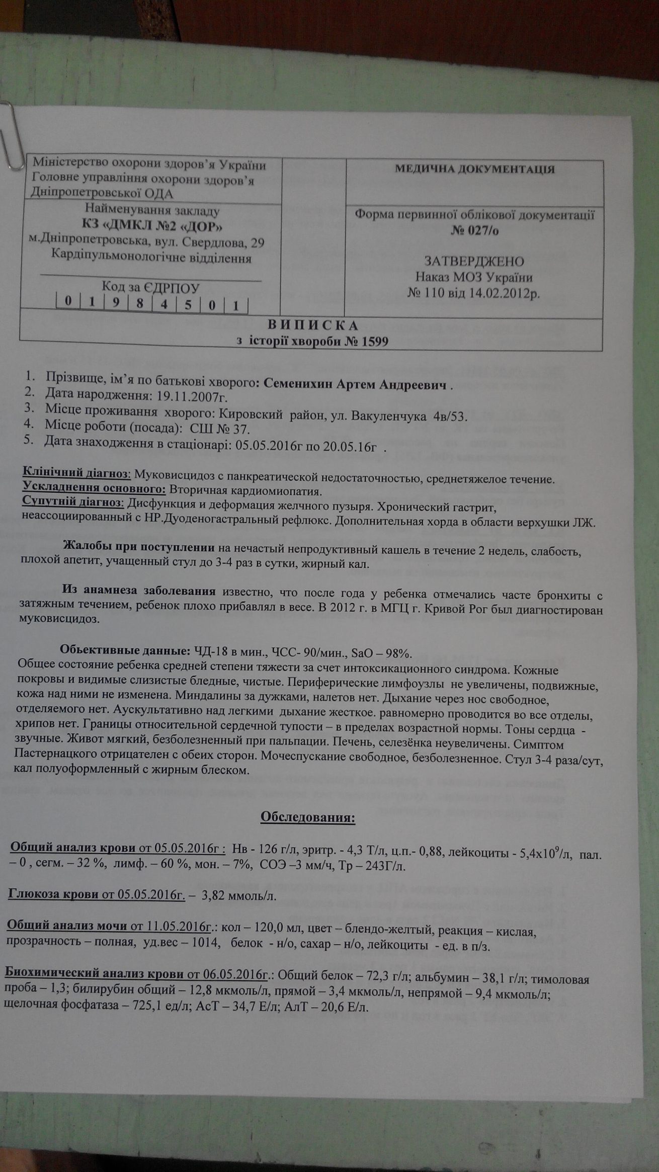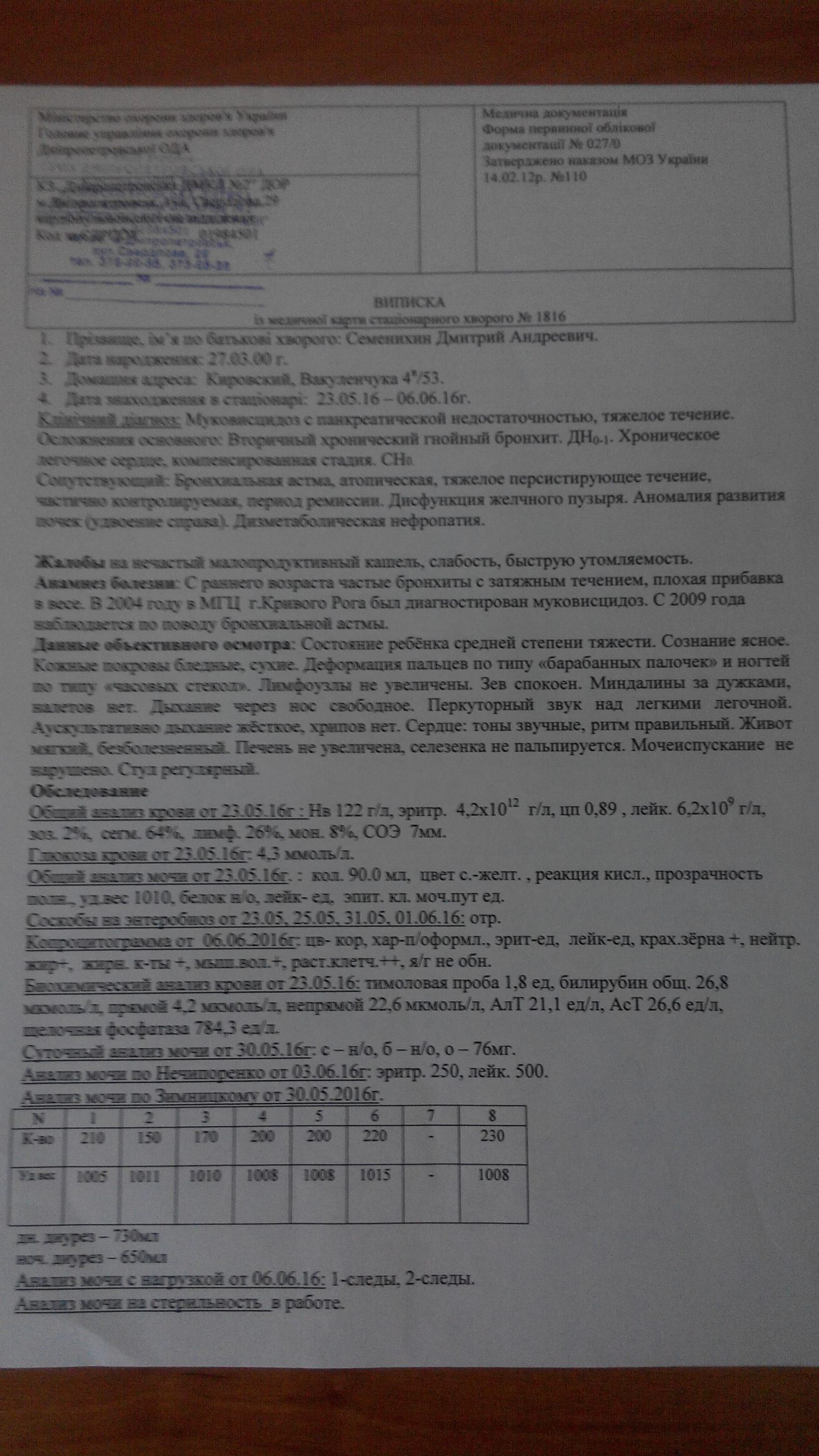 Тема тоже прошел лечение в стационаре, правда плановое. В последнее время, он совсем плохо кушает и не набирает вес. Нам снова увеличили дозу Креона, и настаивают на приеме Урсофалька. Но мы надеемся, что все будет хорошо, что дома мы наедим щечки.