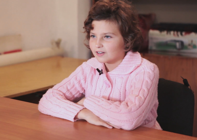 Александра родилась в 2004-ом году. Она учится в пятом классе. Этой милой синеглазой кудряшке нравится решать математические задачи, а также она очень любит петь и рисовать.