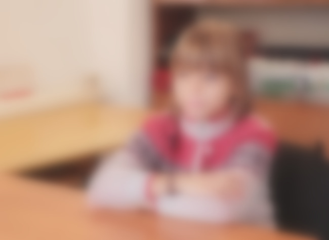 Евгения родилась в 2005-ом году. Учится девочка в пятом классе. Ее любимые школьные предметы: информатика, математика и история. По словам Женечки, ей нравится «изучать прошлое мира». Эта озарная красотка с широкой улыбкой на лице,безумно очаровательными ямочками на щеках, и красивейшими голубыми глазами больше всего любит танцевать и рисовать или срисовывать фрукты, что она делала с большой радостью даже на улице,во дворе интерната. А еще она очень общительная и открытая. Видно,что другие дети тянутся к ней.Нас удивила чистота речи этого ребенка, безукоризненная дикция и открытость.