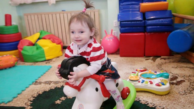 Воспитатели рассказывают, что при поступлении, у нее было мало навыков и двигательной активности. Но сейчас заметен большой прогресс. Девочка хорошо есть, пьет самостоятельно из чашки. Она стала активно интересоваться и манипулировать игрушками. Любит телесные контакты и игры, связанные с ними, типа «сорока», «забодаю-забодаю». Алю легко развеселить, она часто хохочет. Ребенок улавливает интонацию взрослых, слушается их, но и свои желания выражает четко. Ей не скучно оставаться наедине с собой, она может сама себя развлекать какими-то игрушками. Также воспитатели отмечают, что Алиночка- спокойный и совсем не капризный ребенок, которого легко заинтересовать чем-то. Позже, во время разговора с воспитателями, мы заметили, что девочка пытается сама себя укачать. Как же хочется, чтобы у этой малышке наконец-то появились родные люди, которые подарят ей свою заботу и родительское тепло!