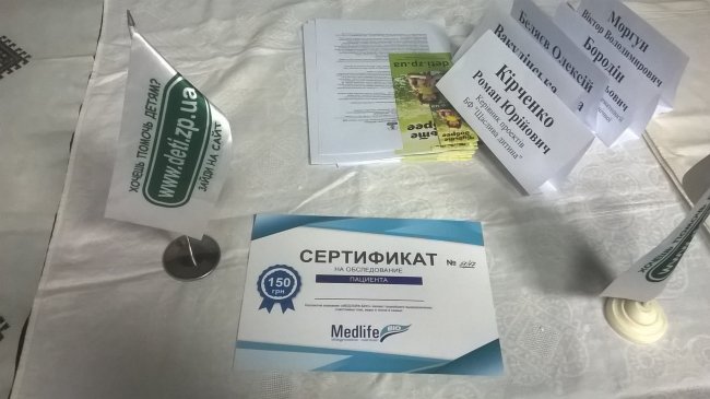 На запит лікарів відповів новий партнер БФ “Щаслива дитина” - ДЦ “Медлайф-Біо” в особі голови ради директорів А. С. Осташинської. На прес-конференції завідуючі відділень отримали 100 сертифікатів “Медлайф-Біо” номіналом кожний 150 грн на безкоштовні аналізи для онкохворих маленьких пацієнтів ЗОКДЛ.