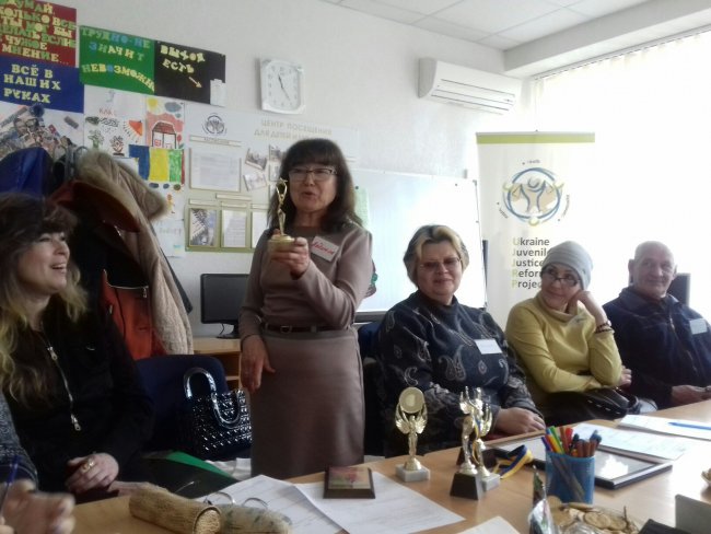 Вот, например, я очень рада была увидеть и лично поздравить приемную маму, Дерезу Людмилу Алескеевну с победой 7 на престижном конкурсе. На прошлой встрече «Клуба приемных родителей» наш фонд финансово поддержал ее поездку в Киев на конкурс среди приемных мам. Так вот Людмила Алексеевна была удостоена дипломом первой степени от малой академии наук за эссе «Чужих детей не бывает»: